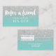 Référez un ami avec cette carte de référence de maquillage moderne et élégant avec une typographie de brosse de style manuel moderne en blanc sur une parties scintillant fausse argent et bleu turquoise oeuf robbin bleu tendance et élégant arrière - plan. Si vous avez besoin de personnalisation, n'hésitez pas à me contacter