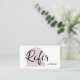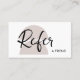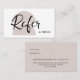 Cette carte de référence design de l'entreprise "référez un ami" comprend un script moderne et des arcs taupe naturels avec un design minimal.