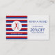 Elégant et simple, le style moderne se réfère à une carte ami pour un coiffeur à bandes rouges, blanches et bleues foncées avec un logo ciseaux (vous pouvez le remplacer par le vôtre).