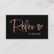Carte De Référencement Black and Faux Rose Gold Script and Heart|