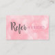 Une carte de référence moderne et chic rose avec un joli bokeh rose vif comme un arrière - plan à la typographie élégante. Parfait pour un large éventail de professions : esthéticiennes, coiffeurs et consultants de beauté, stylistes, maquilleurs et spas pour n'en citer que quelques-uns ! Personnalisez-vous en ajoutant vos coordonnées au verso avec votre offre de réduction spéciale. Conçu par Thisisnotme©