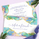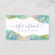 Cette carte d'aiguillage moderne et étonnante imite la beauté captivante d'une pierre à gemme d'incendie. Le design se compose d'un mélange de bleus, de verts et d'or vibrants, créant un effet élégant et attrayant. Les accents en haut et en bas apportent une touche de luxe. Cette carte est idéale pour les entreprises qui souhaitent projeter une image sophistiquée et unique, et est un excellent choix pour un coiffeur, un maquilleur, un spa ou un professionnel du salon.