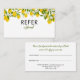 Elégante carte de référence citrons verdure. Parfait pour un large éventail de professions : spas, fleuristes, soins de beauté, spécialistes de soins de la peau, consultants en coiffure et beauté, stylistes, maquilleurs, esthéticiennes et spas pour n'en citer que quelques-uns ! Personnalisez en ajoutant vos coordonnées au verso avec vos informations d'offre spéciale. Conçu par Thisisnotme©