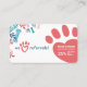 Notre carte de référence pour empreintes de pattes de coeur adorable et mignonne est parfaite pour un large éventail d'entreprises de soins pour animaux et de services vétérinaires. Le design comprend "We Love Referrals" avec le "Love" représenté par un empreinte de patte en forme de coeur rouge.Os de chien stylisés, empreintes de pattes d'animaux de compagnie et éléments floraux et feuillage disposés autour de la carte pour créer un cadre magnifique. Personnalisez avec vos propres détails de référence et le montant de référence. Ce produit fait partie de notre gamme de produits animaux de compagnie de marque florale - Découvrez les designs correspondants de cette collection. Toutes les illustrations contenues dans notre design de carte de référence We love sont dessinées à la main par Moodthology.