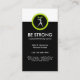 Voici un modèle de carte de visite à deux côtés audacieux et moderne, conçu avec un emblème de fitness cool et un jeu de couleurs noir, blanc et vert qui se démarque. Inclut une fonction de remise de référence sur le revers de la carte pour ne pas perdre de l'espace carte de visite.