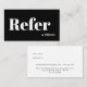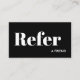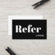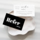 Cette carte de référence élégante de l'entreprise "référez un ami" comprend une typographie audacieuse et un design noir et blanc minimal.