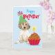 Joli salutations d'anniversaire avec ce design mignon avec un joli chiot français avec casquette de fête et un cupcake d'anniversaire. Le texte peut être facilement changé; il suffit de cliquer sur le bouton personnaliser.