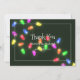 Carte de remerciement de mariage de Noël avec des lumières de Noël brillantes et scintillantes.
