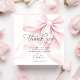 Dites merci avec style avec cette élégante carte de remerciement de mariage rose blush. Avec un nœud rose aquarelle doux, c'est parfait pour les thèmes coquette, romantique et minimaliste. Personnalisez avec votre message sincère pour montrer votre gratitude de manière chic et classique.