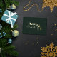 Remerciez vos invités dans un style festif ! Cette carte de remerciement moderne et élégante présente un beau traîneau volant dans un ciel nocturne enneigé, le tout sur un fond vert foncé avec des détails en feuille d'or véritable scintillants. C'est une façon chic de montrer votre gratitude et complète parfaitement notre suite de papeterie de Noël à flocons de neige modernes.