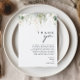 Nous avons conçu cette carte de remerciement avec feuillage et feuilles d'or pour compléter votre réception bohème simple et élégante. Elle présente des feuilles d'eucalyptus vertes et blanches modernes, du feuillage de fougère, une fleur de succulente et des feuilles en feuille d'or minimalistes. Ces éléments donnent l'impression d'une forêt enchantée aquarelle fantaisiste, parfaite pour tout mariage rustique et bohème ! N'hésitez pas à la personnaliser pour qu'elle soit vôtre ; n'hésitez pas non plus à parcourir le reste de la collection pour trouver des produits assortis et coordonnés !