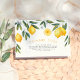 Une carte de remerciement assortie à nos invitations de mariage "She's Found Her Main Squeeze Lemon Bridal Shower". Voir la collection liée sur cette page pour les articles coordonnés. Ce design présente un arrangement peint à la main de citrons, de fleurs et de verdure autour du haut de cette carte. À l'intérieur, il y a un message de remerciement personnalisé.