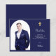Exprimez votre gratitude sincère avec élégance grâce à cette belle carte de remerciement de confirmation de couleur bleu marine. Conçue spécialement pour les garçons, cette carte présente un fond bleu marine riche, un accent de croix dorée subtile et un espace pour une photo personnelle pour commémorer ce jalon.