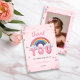 Cette carte de remerciement pastel rainbow a été créée comme un moyen doux de partager la gratitude après un premier anniversaire magique. Des couleurs douces, des nuages duveteux et des lettrages ludiques ont été conçus pour s'associer magnifiquement avec une photo au verso, transformant un simple merci en un souvenir à conserver.