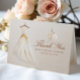 Remerciez vos invités avec style grâce à cette élégante carte de remerciement pour enterrement de vie de jeune fille, représentant une robe de mariée aquarelle avec des accents dorés et des fleurs neutres douces. Conçue pour se coordonner avec notre suite de mariage rose poussiéreux et eucalyptus, cette carte pliée est parfaite pour les célébrations automnales ou les jardins romantiques. Personnalisez avec le nom de la mariée et la date de l'événement.