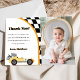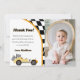 Carte de remerciement pour une fête d'anniversaire de voiture de course jaune