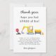 Carte de remerciement de fête d'anniversaire de garçon à thème de construction mignon avec une illustration aquarelle d'un chantier de construction avec un bulldozer. Le texte dit "merci. j'espère que vous vous êtes bien amusé !"