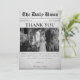 Carte de remerciement d'article de journal de mariage cool. Personnalisez-la avec les détails de votre événement et une photo de la mariée et du marié.