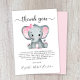 Carte De Remerciements Bébé Eléphant mignon Douche fille