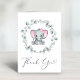 Jolie carte de remerciements pliée avec "Merci" dans un script élégant avec un battement de coeur et une aquarelle d'un bébé éléphant rose dans une couronne de verdure d'eucalyptus. À l'intérieur, personnalisez votre message de remerciement et ajoutez votre ou vos nom(s) dans un script de signature, ou laissez vide pour une note manuscrite.