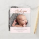 Ce moderne 2 photo de remerciement note caractéristiques or rose écriture manuscrite de remerciement, message personnel et photo sur le devant. Le dos comprend une deuxième photo bébé qui est une photo verticale à fond saigné. Cliquez sur le bouton Modifier pour customiser cette conception avec vos photos et détails.