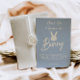 Simple Moderne Cute Bunny Baby Boy carte de remerciements douche garçon. La palette chaleureuse de tons bleu doux, ivoire beige ouvre la voie à une affaire Boho Chic et Elegant. De la typographie élégante au thème adorable Rabbit. N'oubliez pas de découvrir toute la collection.