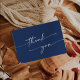 Ce chic carte de remerciements de mariage royal bleu plat est parfait pour un mariage minimaliste. Le design bohème moderne bleu foncé et audacieux présente une calligraphie rustique simple avec un style unique mais classique. Le dos de la carte de remerciements est vide pour que vous puissiez écrire à la main une note réfléchie.