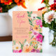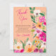 Express votre gratitude avec cette Elegant brillant et audacieux modèle de fleurs d'été de printemps moderne avec fleur sauvage assez surdimensionné et script de brosse carte de remerciements de la nuptiale avec typographie de calligraphie moderne avec néon brillant rose, orange, vert et jaune fleurs sur la pêche