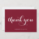 Envoyez vos remerciements avec cette carte de remerciement personnalisable. Elle présente une calligraphie moderne et une typographie simple sur un fond bordeaux. Personnalisez en ajoutant votre nom ou d'autres détails. Cette carte de remerciement calligraphiée est parfaite pour les entreprises, les mariages, les enterrements de vie de jeune fille, les baby showers, les remises de diplômes, et bien plus encore.