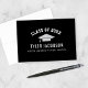 Moderne de graduation personnalisée grâce aux cartes de notes peuvent être personnalisées avec le nom du diplômé et l'école. Customisez une photo senior ou une photo grad party à l'intérieur (rabat supérieur) de la carte. Les couleurs noir, blanc et gris argenté peuvent être modifiées.