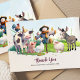 Dites merci dans le style d'inspiration agricole avec cet adorable carte de remerciements de baby shower. Avec de jolies illustrations d'animaux d'élevage comme des cochons, des vaches, des moutons, des ânes, des oies et des coqs, ainsi que des sentiments amusants de Oink, Baa, Moo, et Cock-a-Doodle Doo. Customisez-le facilement avec les détails de votre fête et faites-le unique pour votre journée spéciale en utilisant le bouton "customisez-le" pour la mise en forme du texte et les options de placement. De plus, ce carte de remerciements est parfait pour coordonner avec d'autres fournitures de fête sur le thème de la ferme pour un look cohésif et sentir à votre fête de baby shower. Faites part de votre appréciation à vos invités d'une manière amusante et mémorable avec ce charmant carte de remerciements animal de ferme.
