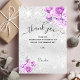 Un arrière - plan à l'aspect faux argenté, décoré de fleurs rose pastel. Script écrit à grande main avec des swashes et le texte : Merci. Personnalisez et ajoutez votre note de remerciement et votre nom.