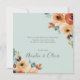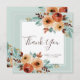 Belle conception de cartes de remerciements mariages avec des roses d'aquarelle aux couleurs terreuses sur un arrière - plan blanc avec bordure verte menthe.