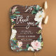 Ce carte de remerciements mariage est orné d'une couronne de fleurs d'aquarelle rose et blanc, avec un feuillage vert sur un arrière - plan rustique imprimé en bois. Pour une personnalisation plus avancée de cette conception, cliquez sur le lien Personnaliser supplémentaire pour modifier la police, la taille et la couleur.