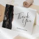 Cette élégante carte de remerciements mariage moderne dispose d'une bordure en aquarelle noire ornée d'une parties scintillant en or rose. Le texte personnalisable combine les mots "Merci" dans le script d'écriture manuscrite gris charbon et les noms de la mariée et du marié en caractères italiques sur un arrière - plan blanc.