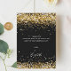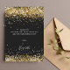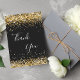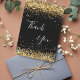 Un carte de remerciements d'anniversaire féminin et élégant. Une couleur noire arrière - plan. Avec de la poussière de parties scintillant en faux or. Sur l'avant grand main écriture et le texte : Merci. Retour : Personnalisez et ajoutez Votre note de remerciement et votre nom. Le nom est écrit avec un script de style moderne écrit à la main.