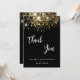 Un arrière - plan noir, décoré de faux parties scintillant dorées, brille. Sur l'avant grand main écriture et le texte : Merci. Retour : Personnalisez et ajoutez votre note de remerciement et votre nom. Le nom est écrit avec un script de style moderne écrit à la main. Texte blanc.