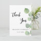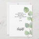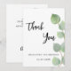 Un arrière - plan blanc chic décoré de verdure d'eucalyptus. Sur l'avant, grand noir de couleur manuscrit et le texte : Merci, votre et une date. Retour : Personnalisez et ajoutez Votre note de remerciement et votre nom.