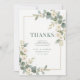 These cards include a carefully designed combination of romantic style and functionality, perfect for expressing gratitude to family and friends. The back features a discreetly integrated photo and QR code, allowing couples to easily share a gallery of wedding memories and photos while maintaining the overall visual harmony. Its delicate flowers and eucalyptus branches make it an ideal choice for spring and summer weddings, outdoor celebrations, and ceremonies where nature and sentimental details play a central role.