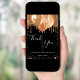 Une couleur noire arrière - plan. Avec parties scintillant en faux or foncé, éclat et ballons. Sur l'avant grand main écriture et le texte : Merci. Retour : Personnalisez et ajoutez Votre note de remerciement et votre nom. Le nom est écrit avec un script de style moderne écrit à la main.