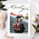 Carte de remerciements de graduation de collage photo moderne. Il comprend 4 photos du diplômé, script de typographie "merci", nom et détails de l'école. Personnalisez-vous avec votre message de remerciement au dos.