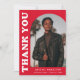Carte de remerciements de remise des diplômes élégant et branché avec la photo du diplômé sur le devant avec un cadre photo en arc décalé. "Merci" est affiché en gras blanc rétro lettrage sur un arrière - plan rouge. Personnalisez l'avant du carte de remerciements de remise de diplômes en photo en ajoutant le nom du diplômé, son école et son année de remise de diplômes. La carte s'inverse pour afficher votre message dactylographié ou manuscrit. Le carte de remerciements rouge est parfait pour les diplômés du secondaire et du collège.