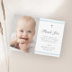 La carte de remerciements de baptême à rayures classiques est moderne et propre avec des rayures bleues douces et une croix avec photo. Type personnalisable gris vous permet de modifier toutes les informations de la carte à votre goût. Parfait pour le baptême d'un petit garçon.