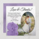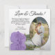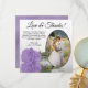 Ces belles cartes de remerciement de mariage sont une merveilleuse façon de montrer votre appréciation à vos amis et à votre famille pour la célébration avec vous lors de votre journée spéciale. Ils présentent votre photo mariage dans un cadre ovale avec un seul rose à long tige lavande violet allongé sur son côté réfléchissant dans l'eau. Le titre dit "Amour & Merci" avec la place pour une note et signature personnalisée. Classiques, romantiques et sophistiquées, ces cartes sont le moyen idéal de conclure votre fête mariage.