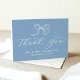 Express votre gratitude dans le style avec ce carte de remerciements mariage sophistiqué présentant un arc blanc dessiné à la main et "Merci" en calligraphie blanche élégante dressée contre un arrière - plan bleu doux. Customisez le devant avec vos noms et la date du mariage pour un souvenir durable de votre célébration. L'intérieur de cette carte pliée offre de la place pour votre note personnelle de gratitude, vous permettant de partager des remerciements sincères avec des proches. Avec sa palette élégante de bleu et de blanc, ce design vient compléter les suites de papeterie mariages classiques, côtiers et modernes.