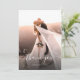 Merci à vos invités mariages avec une élégante carte de remerciements de mariage de calligraphie script avec une photo romantique dans un cadre extérieur, dans un style simple minimaliste moderne.
