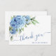 Carte De Remerciements Elégante aquarelle Bleu Hydrangée Fleurs Simple