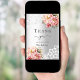 Une carte de remerciements nuptiale moderne et élégante. Un arrière - plan faux argenté. Décoré de roses roses roses rousses, fleurs florales et dentelle. Sur le devant le texte : Merci, demain mrs. Retour : Modèle pour Votre mot de remerciement et nom.