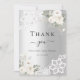 Un carte de remerciements de baby shower moderne et élégant. Un arrière - plan faux argenté. Décoré de roses blanches, fleurs florales et dentelle. Retour : Modèle pour Votre mot de remerciement et nom.