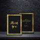 Un arrière - plan noir classique, décoré de faux cadres dorés. Script écrit à grande main et texte : Merci. Personnalisez et ajoutez votre note de remerciement et votre nom.